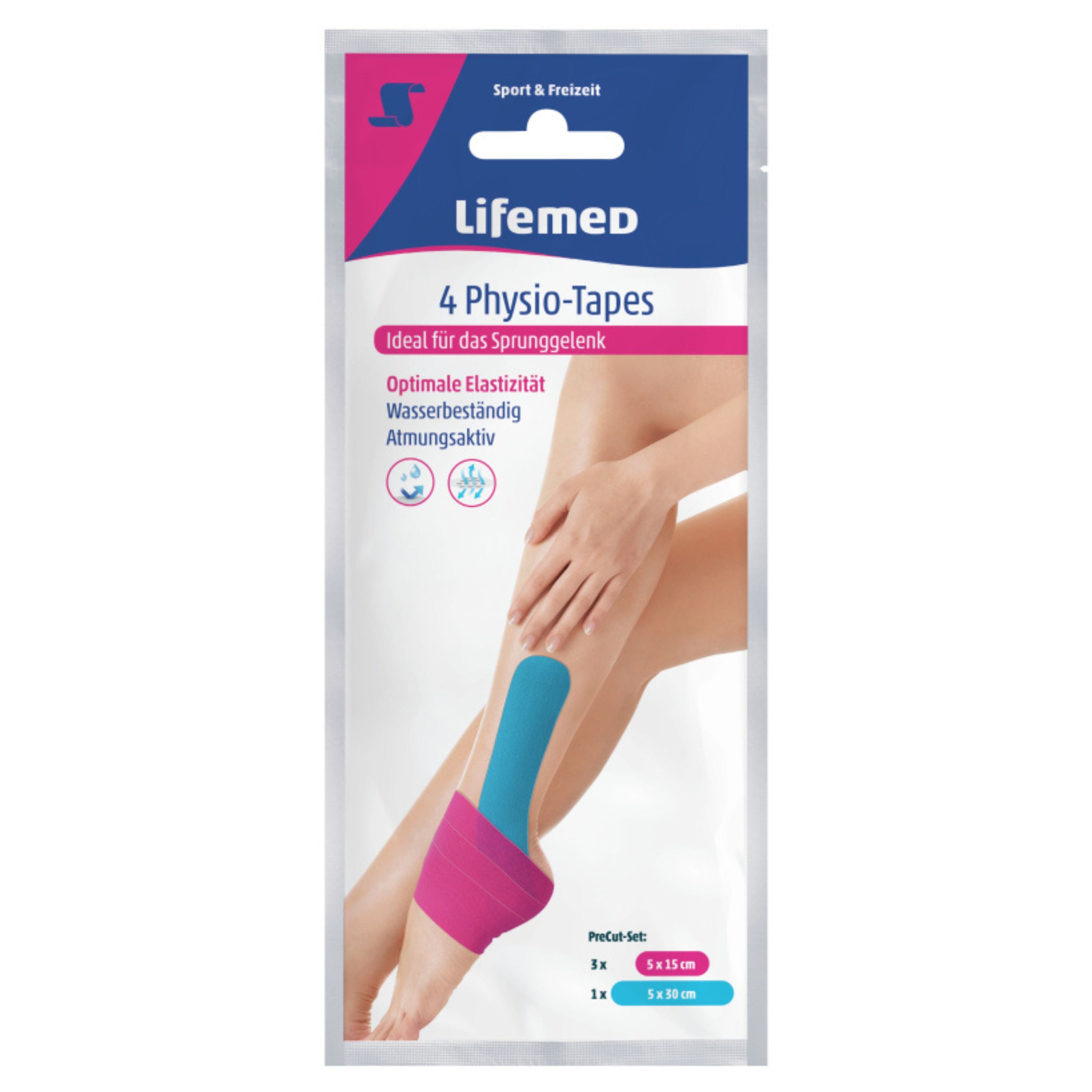 Die vorgeschnittenen Physio-Tapes von Lifemed unterstützen das Stabilitäts- und Bewegungsgefühl von Muskel- und Gelenkpartien bei sportlichen Aktivitäten sowie während therapeutischer Maßnahmen. Die latexfreien Lifemed-Physio-Tapes sind ideal für Sportler, die sich selber tapen möchten, sowie für Physiotherapeuten, Sportärzte und Heilpraktiker.