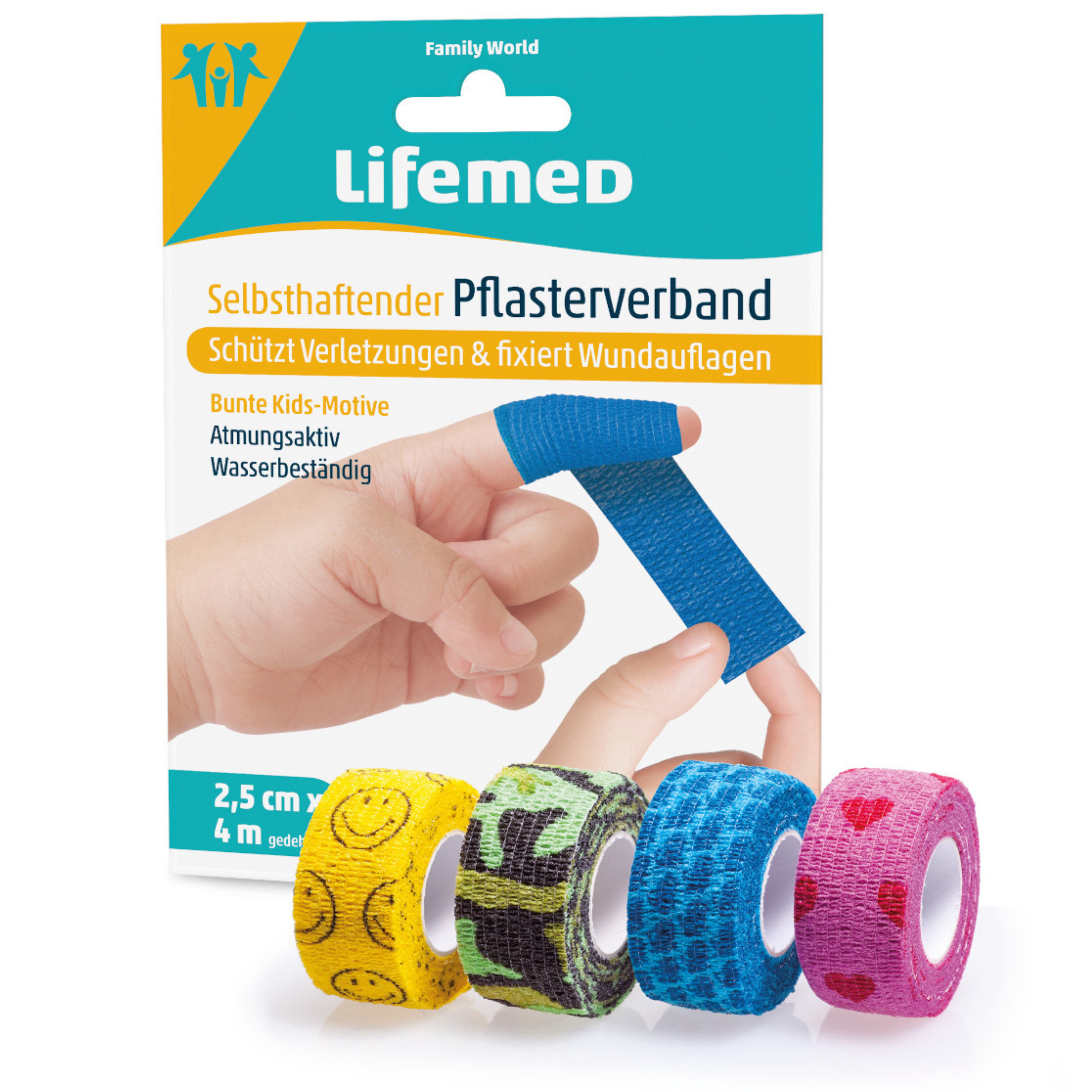 Lifemed Selbsthaftender Pflasterverband 4 m x 2,5 cm, in 4 verschiedenen Motiven